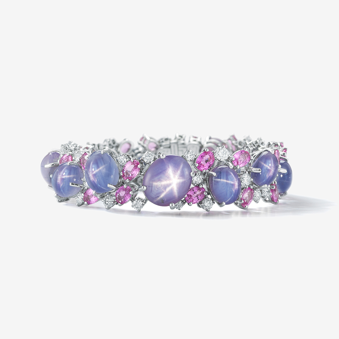 14 Oval Star Sapphires 82.61 ct, 29 Oval Pink Sapphires 16.53 ct, 25 Round Diamonds 4.99 ct.