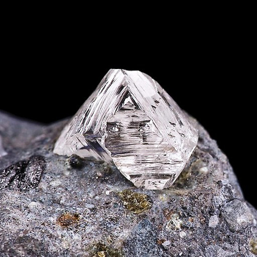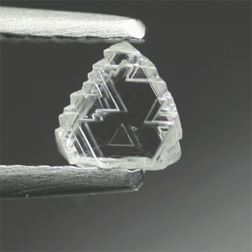 Clearly visible triangular trigones present on rough diamond of Kimberlite, a rock that carries these gems from the heart of the earth’s mantle to the surface. If the cutter chooses to leave part of these stingrays, they will be clearly visible if observed with a gemological triplet.
