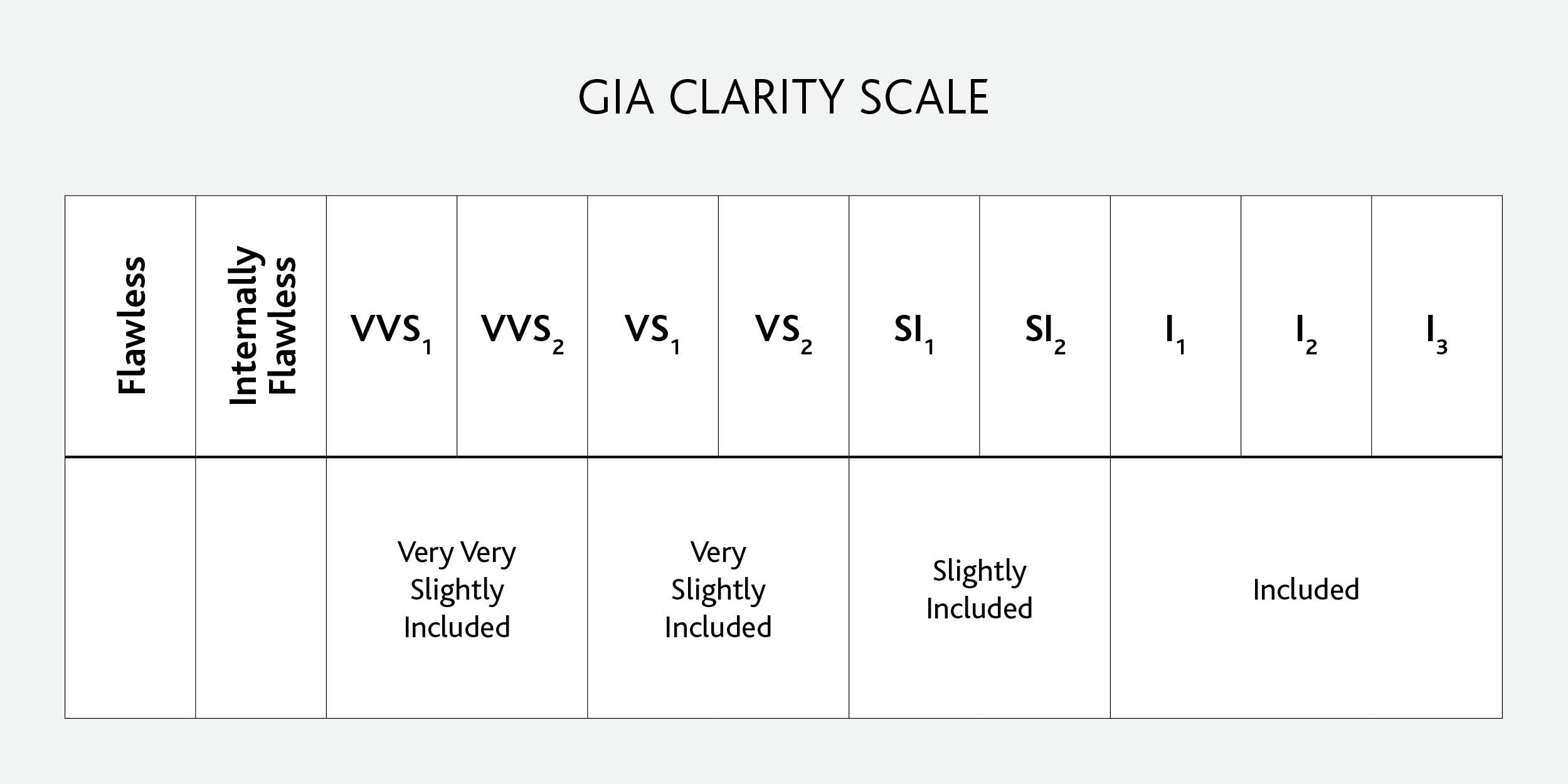 In order to determine the value of a diamond on the basis of its purity, a scale was invented which is strictly followed by gemological institutes, which is based on the gems’ observation through a 10x magnification loupe and on the “ease” of finding such inclusions by an expert and trained eye.